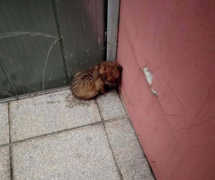A tiny puppy was curled into a corner, soaked from the rain, her body pressed against cold concrete. She was trembling. Alone. Too small to defend herself. According to the rescuer who later stepped in, she had been there for three days. During that time, crows attacked her fragile body, leaving wounds across her skin.