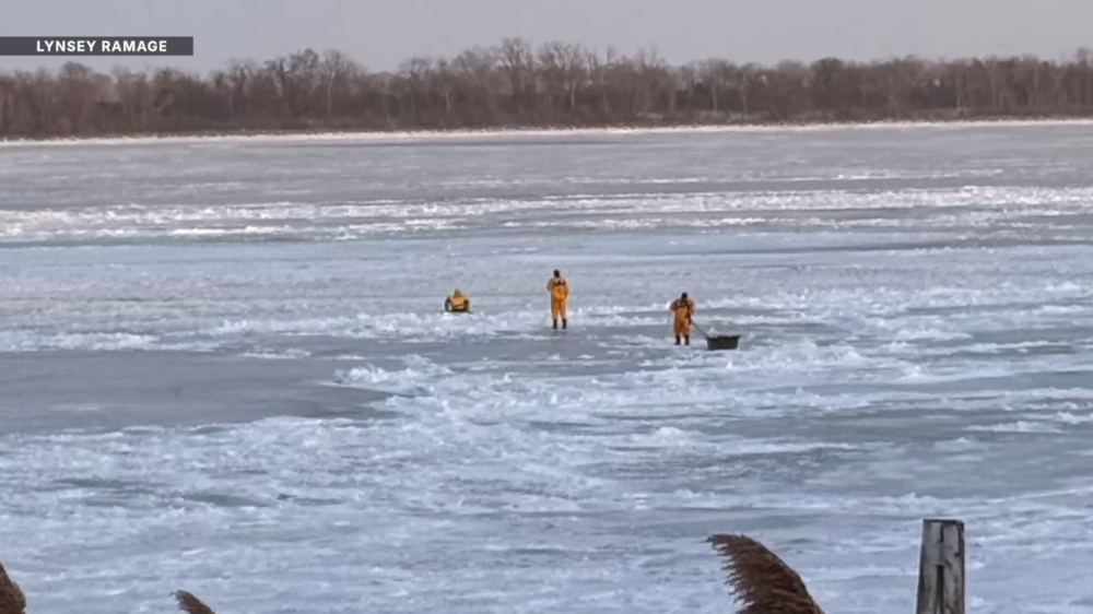 They brought out a special airboat, moving carefully across the ice.