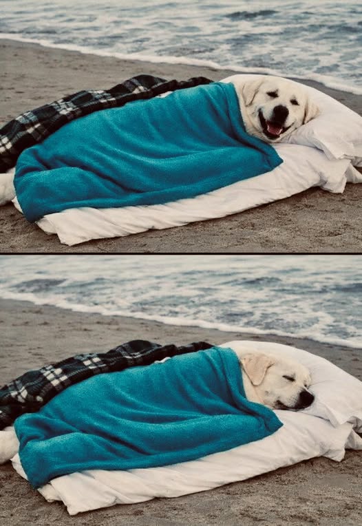 He laid out their old blanket — worn, faded, and perfect — and sat close as the tide whispered in. They shared one final warm meal, just like always, unhurried and quiet. The breeze moved gently around them. The ocean rose and fell, steady and calm.