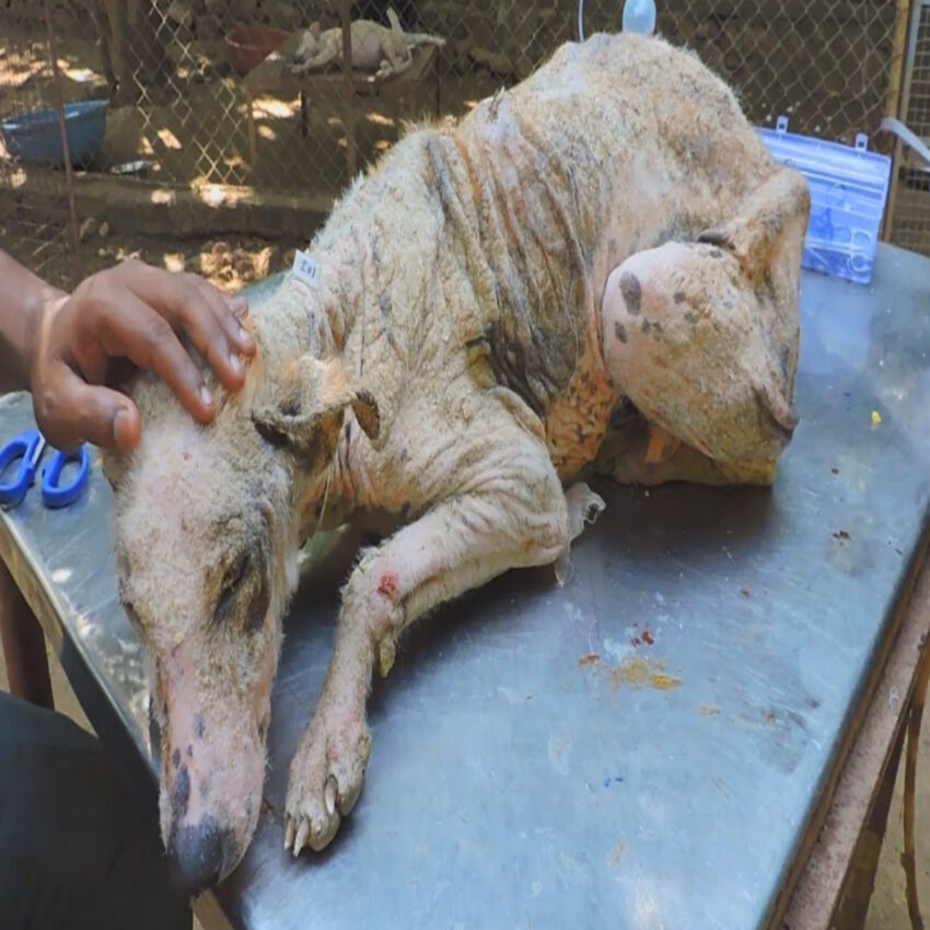 Underneath a porch, we discovered a dog in dire need of help. His frail body and weary demeanor told a grim story of weeks spent suffering from severe mange, leaving his skin inflamed and sore.