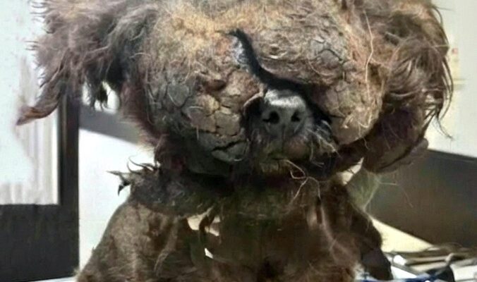 At North Central Shelter, the team had to delicately remove 2.2 pounds of filth from her tiny 5.5-pound body.
