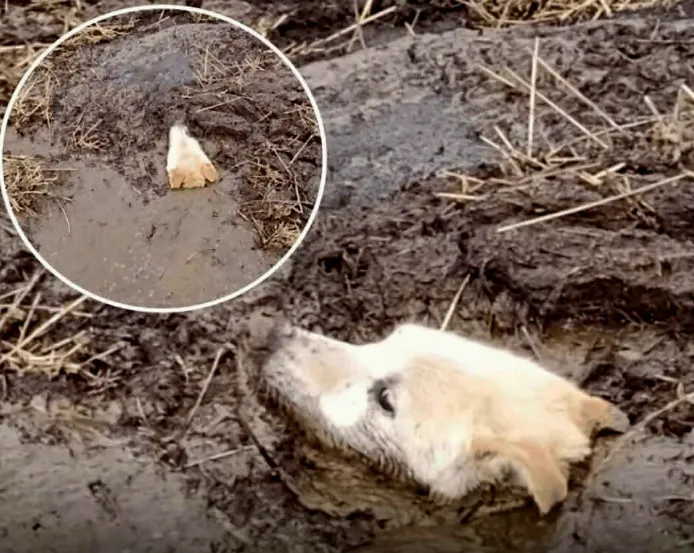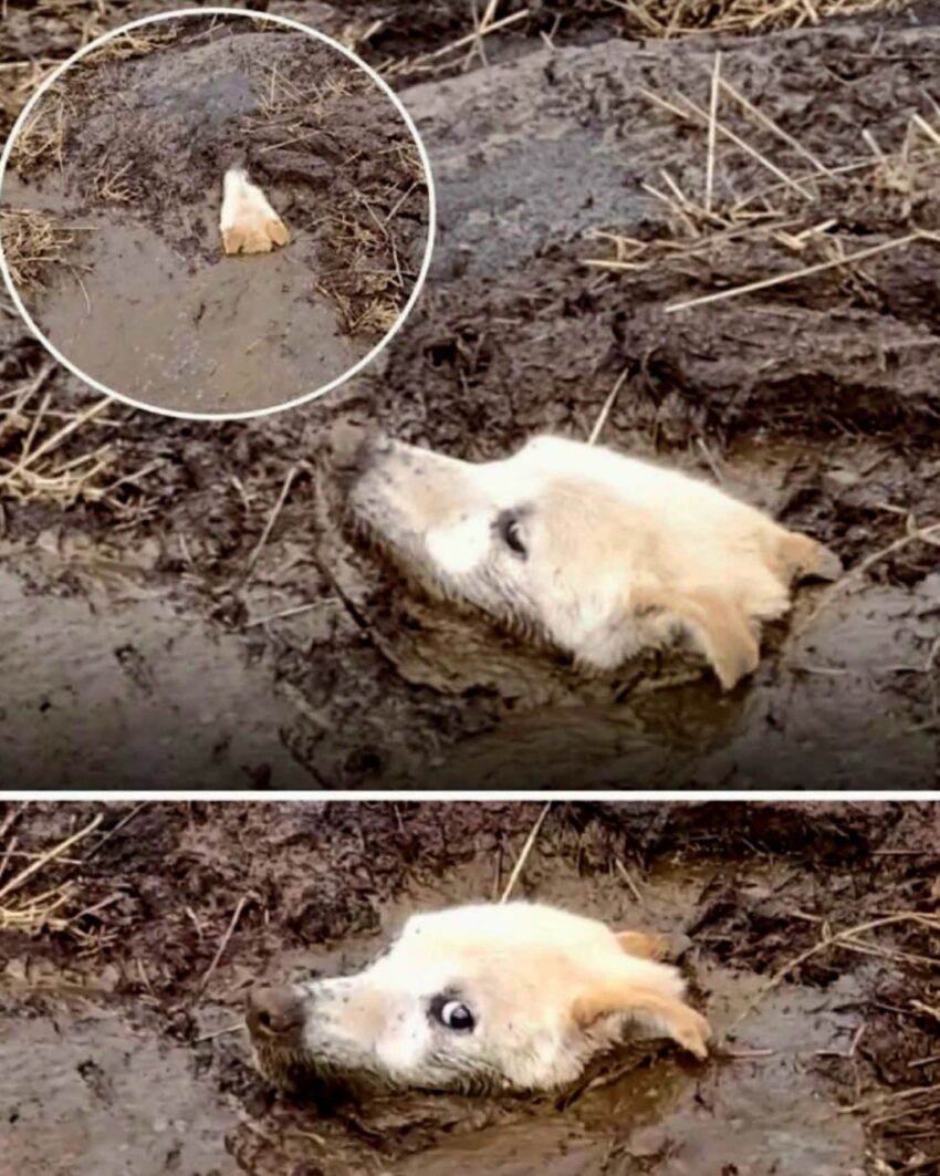 It was an ordinary evening when the farmer heard it—soft, desperate cries drifting through the still air. The sound seemed out of place in the calm surroundings of his rural farm. Intrigued, he followed the faint cries, and as he made his way deeper into the woods, his heart sank. There, hidden in a dark swamp, was a dog trapped in thick mud, her body buried deep, with only her head above the surface. Her eyes, filled with fear and pain, met his— a silent plea rising from the depths of the earth, asking for one last chance.