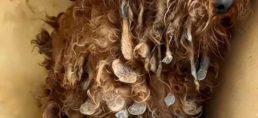 For days, the endless rain had poured down relentlessly, turning the back alleys of the city into a quagmire. One of these gloomy afternoons, a thin, almost imperceptible moan cut through the melody of the raindrops. Hidden by a crumbling wooden fence, barely visible among the dirty remains, lay a small, tangled creature. Her fur, once a bright reddish-brown, was now a tangled mess, heavy with dirt and water. Her eyes, wide with ancient t.e ŕror, had a special depth that spoke of countless nights spent alone. She was so weak that she could not even lift her head, her thin figure trembling with cold and hopelessness that seemed to radiate from her very being. This was Lucky, a name she would acquire much later, a name that would become a symbol of an incredible victory over all difficulties. But at that moment, she was just another forgotten soul, teetering on the brink of oblivion. The person who found her, a nondescript Sarah, on her way home from work, was hesitant at first, having seen too many such scenes before. But something in Lucky’s eyes, a flicker of pleading that transcended her broken spirit, made Sarah stop, reach out, and offer a kindness that would set in motion a chain of events more miraculous than she could have imagined.