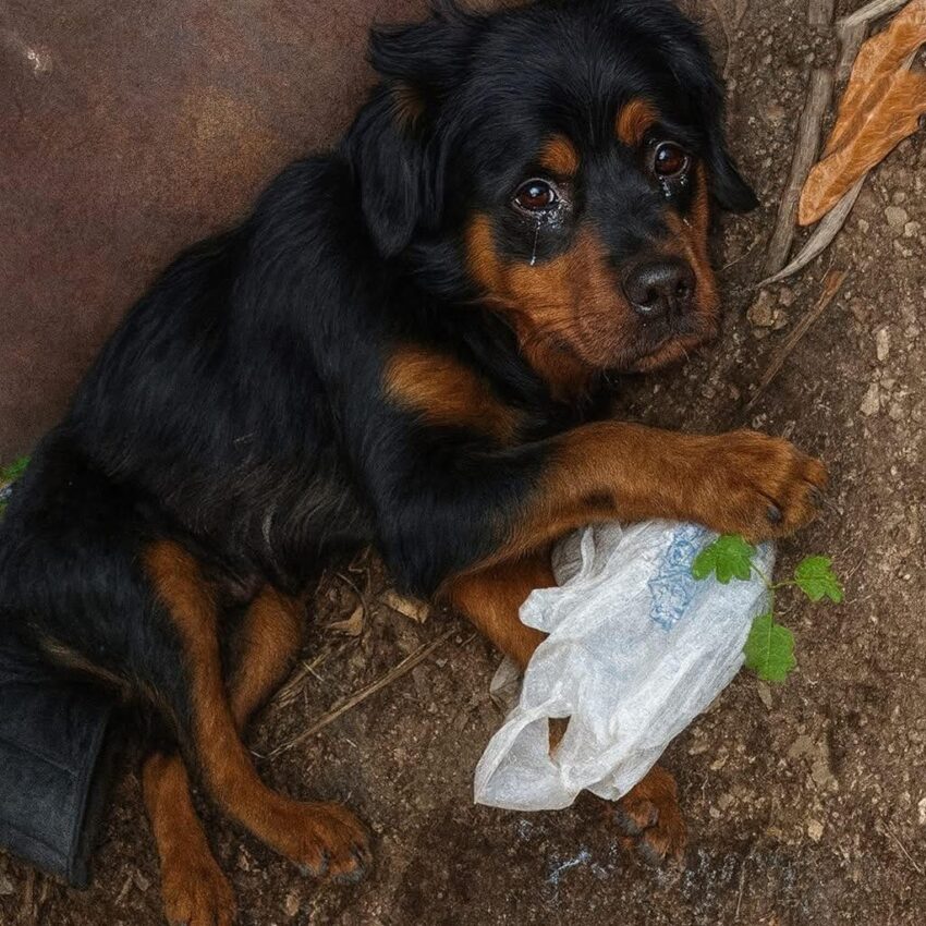 The young Rottweiler was curled tightly against a cold metal dumpster, her thin body trembling, her eyes barely open. Every breath looked like a battle she wasn’t sure she could win.