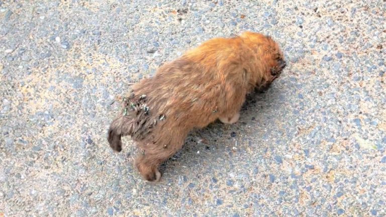 The rescue began with a call about a small puppy lying motionless in a parking lot. When the rescuer arrived, the scene was devastating. The newborn’s fragile body was covered in flies, and the smell of infection lingered in the air. A severe wound on her neck had become dangerously infested, and her condition was critical. She was only a few days old, her umbilical cord still attached, far too young to survive on her own. To make matters even more heartbreaking, she had already lost sight in one eye.