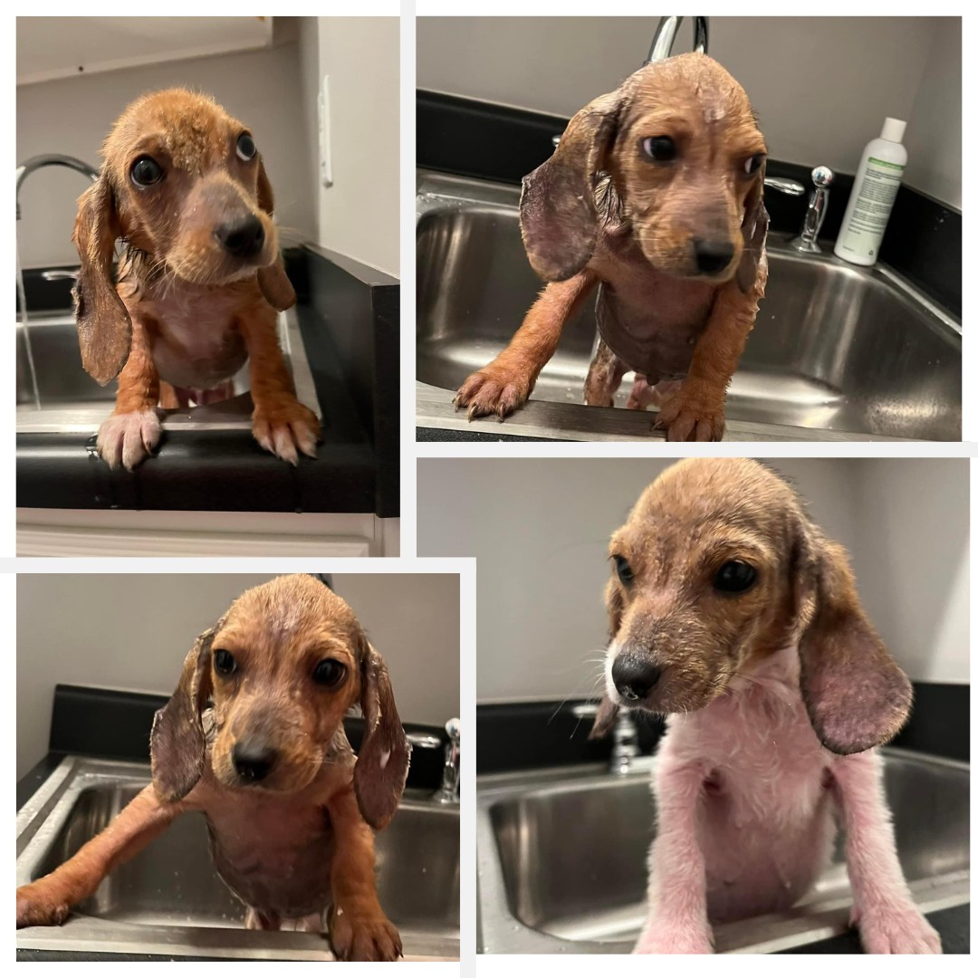 Upon arrival at Triangle Beagle Rescue, the puppies were in delicate condition. Their fur was missing due to excessive scratching, leaving their skin sore and irritated. They required medicated baths and gentle treatment to aid their recovery.