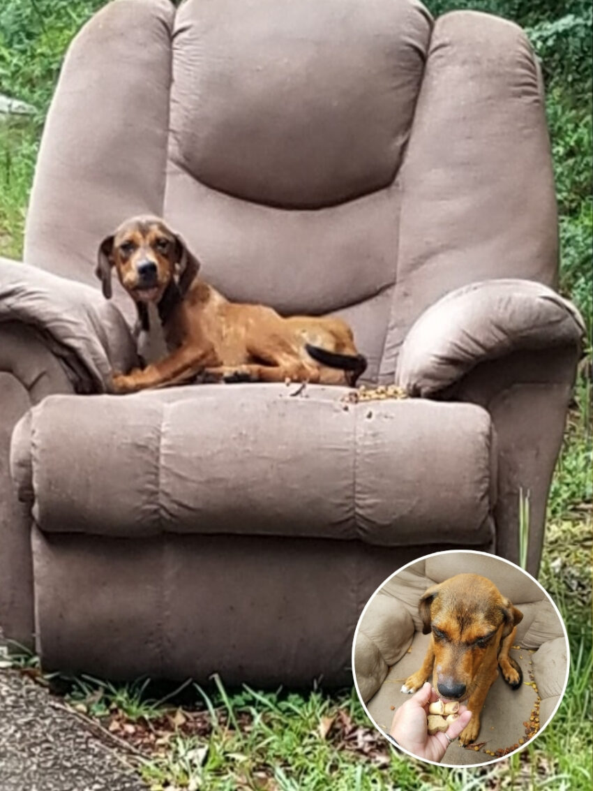 In Lincoln County, Mississippi, along Gatson Road, animal control discovered a desolate scene: a four-month-old puppy resting in a discarded recliner next to a broken television.