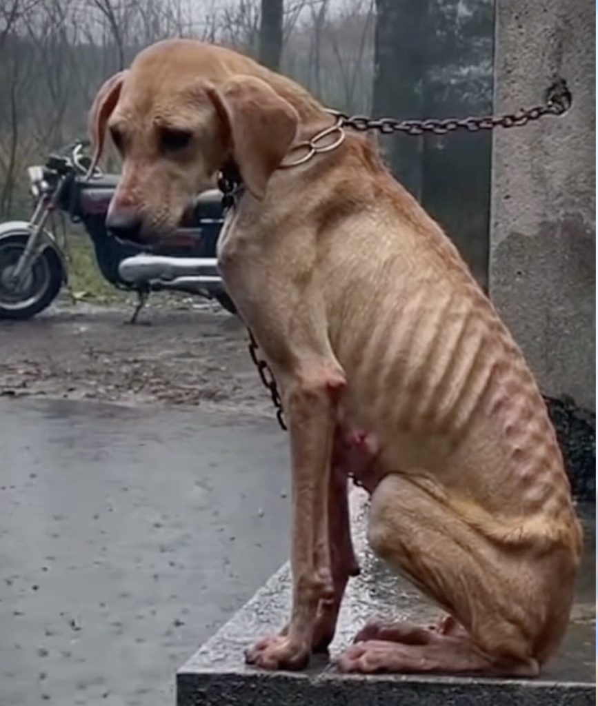 Chained for 5 years in the rain, he begs passersby to save him from his cruel owner