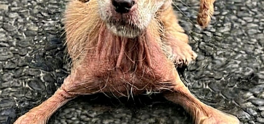Her front legs were badly deformed, and her tiny body was covered in mange.