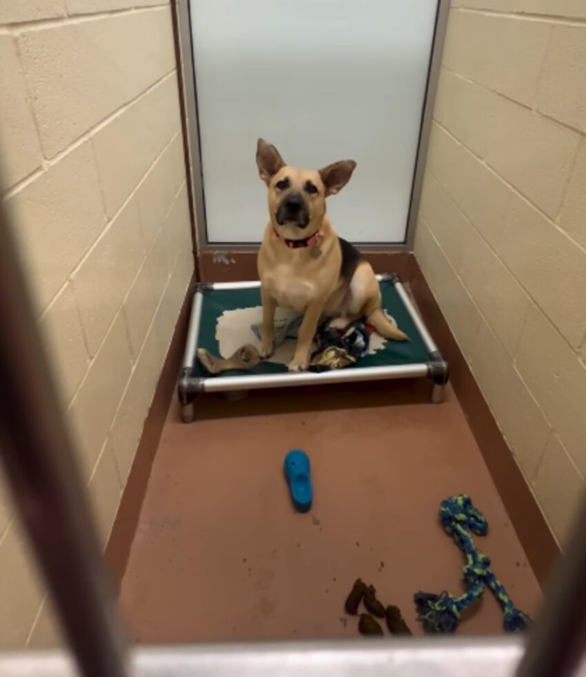Julie Saraceno, who was encouraged by friends and former caregivers of Mommas, recently shared a heartfelt video of the sweet dog in her kennel.
