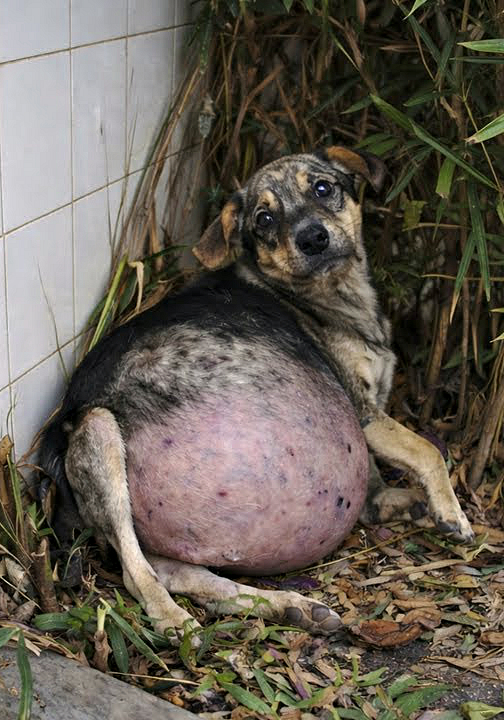 His belly was so swollen it looked like it could b.u ŕst at any moment.