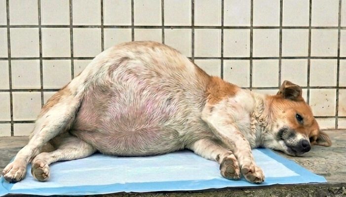 I had never seen a dog with such a huge belly.