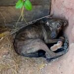 Stray dog’s belly is severely swollen… But the dog is not pr℮gnant.