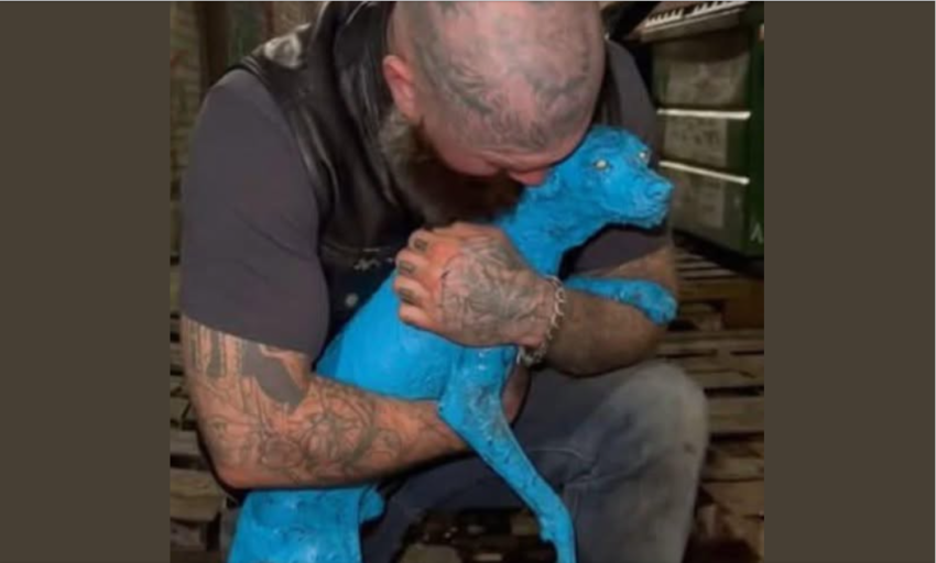 It was a young dog, starved to the bone and completely coated in heavy, industrial-grade paint.