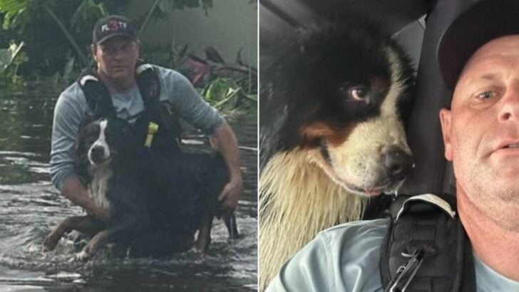 A type of heroes was Dusty Mascaro, HCFR captain, who was photographed when he waded via the water whereas carrying the dog whose life he had simply saved.