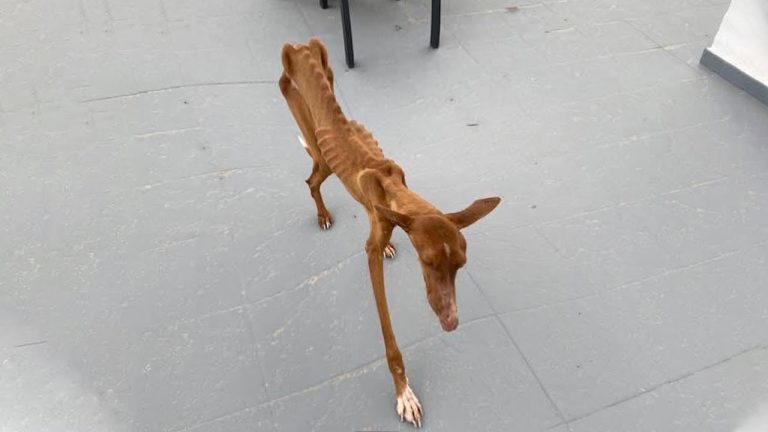 Felix was only three years old when his body told a story no animal should ever have to live through. The slender Podenco, a breed known for its elegance and agility, had been reduced to what rescuers described as a walking skeleton. His ribs pressed sharply against fragile skin, his hips protruded painfully, and every step looked like it might be his last. It was almost impossible to comprehend how such a young dog could be brought so close to the edge of survival.