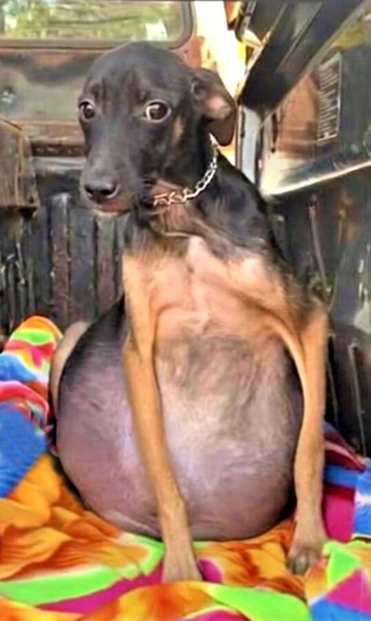 The vets noticed that he had severe ascites, which caused fluid buildup in his abdomen.
