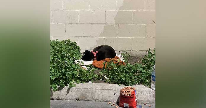 When the workers from the nearby car wash noticed a dog sleeping on the curb and concluded that her food supply was insufficient, they put out fresh kibble and contacted Hall for assistance.