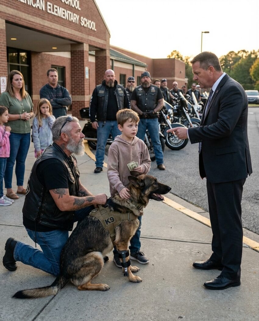 A trembling 10-year-old boy placed $42 in wrinkled bills on a biker’s table and whispered, “Please… hide my dog before the principal takes him.” The room went silent. No one expected what the bikers would do next.
