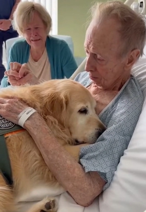 Tom’s wife sat beside the bed, one hand holding his, the other resting lightly on Buddy’s back. Her thumb moved in slow circles through soft fur.