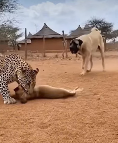 Can the big dog rescue the puppy from the leopard’s deadly attack? 🐶🐕🐆⚠️❓