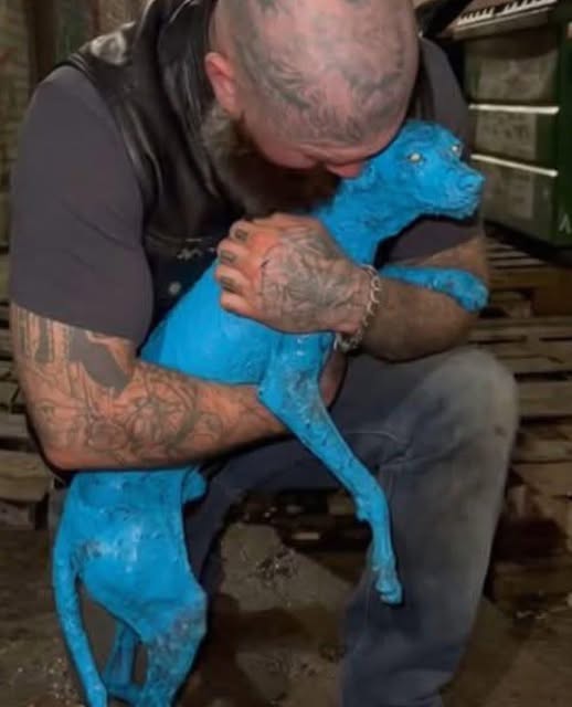 It was a young dog, starved to the bone and completely coated in heavy, industrial-grade paint.