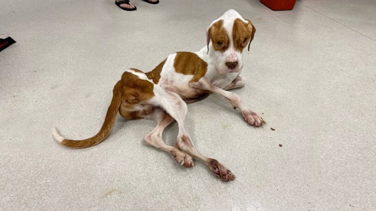 Spaghetti’s body was so thin that every bone seemed to press against his skin. His skeletal frame was painfully visible, a silent testimony to prolonged neglect. The team would later describe his condition as one of the most severe cases they had ever encountered. He was not just underweight; he was drastically so, at least fifty pounds below what a healthy dog of his size should have been. It was clear that this was not the result of a temporary setback. This was the outcome of long-term deprivation.