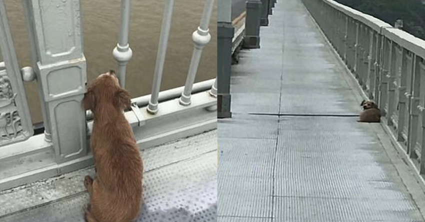 [He.artbre.aking] images show the faithful pet sitting on the pavement of Yangtze Bridge in Wuhan, where its owner [re.po.rte.dly] took their life.