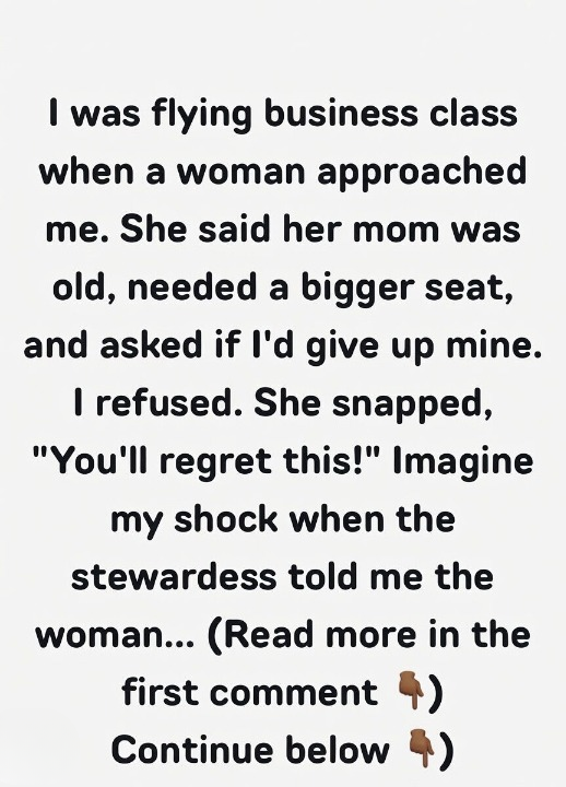 I recently took a long-haul flight and treated myself to a business class seat—something I don’t usually do. About 20 minutes after boarding, a woman approached me and asked if I would give up my seat for her “elderly mother,” saying she needed more space.