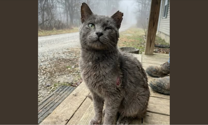 She was almost unrecognizable. She had lost nearly 40 percent of her body weight. Every paw pad was [cracked] open — dried [b.lo.od] visible between her toes. Her left ear was [to.rn] halfway through, likely from a [pr.eda.tor] encounter. A section of fur along her right side was gone, replaced by a raw, partially scabbed [w.o.u.nd]. One eye was swollen to a slit. Her coat was matted with dirt, dried [b.lo.od], and burrs embedded so deeply a veterinarian later had to [se.da.te] her to [re.mo.ve] them.