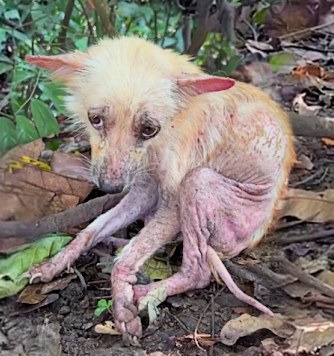 Curled up in a tangle of thorny branches and fallen leaves lay a tiny dog, shivering uncontrollably, eyes wide with fear and pain. She was clearly unable to walk and seemed to have given up hope. Her body trembled with every breath, as if she were barely hanging on. Despite her weakened state, she tried to curl inward as we approached, instinctively attempting to shield herself from more harm. We would later give her the name “Hope”—a name that came to represent both the pain she had endured and the second chance she was about to receive.