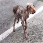 We gently lifted her fragile body and rushed her to the nearest veterinary clinic. Every movement caused her pain, and she whimpered quietly as we tried to comfort her. Her skin was inflamed and raw, covered in open wounds and sores. Her ribs jutted out from under her thinning coat, and her eyes were full of exhaustion and sorrow. She was a shell of a dog, and yet there was still a flicker of life left in her—a tiny glimmer that gave us hope that maybe, just maybe, she hadn’t given up completely.