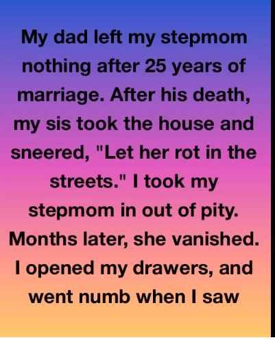 My dad left my stepmom nothing after 25 years of marriage. It was a shock that rippled through our family in Leeds like a sudden winter storm. We all knew Dad was a bit old-fashioned and stubborn, but nobody expected him to cut off the woman who had cared for him through three bouts of pneumonia and a hip replacement. When the lawyer read the will, the silence in the room was so thick you could have cut it with a knife.