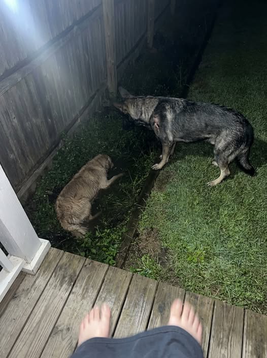 The motion light kicked on when we stepped off the porch. Ghost led me across the grass — not running, not panicked, just walking with a purpose I hadn’t seen in him before. Steady. Direct. The way someone walks when they know exactly where they’re going.