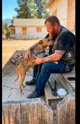 Part 2: A Biker Was Photographed Holding a Starving Pit Bull on an Abandoned Porch for 30 Minutes — The Comment He Left Under the Viral Photo Broke the Internet