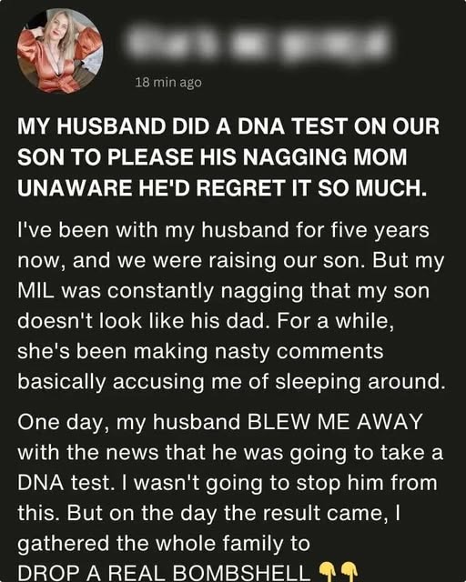 She was ready to face the challenges that lay ahead, all for the sake of her son and the chance to rebuild her life on her terms. The woman shared an update to the original post, recounting the events that unfolded after her husband received the DNA test results. On the day the results were due, she took matters into her own hands.