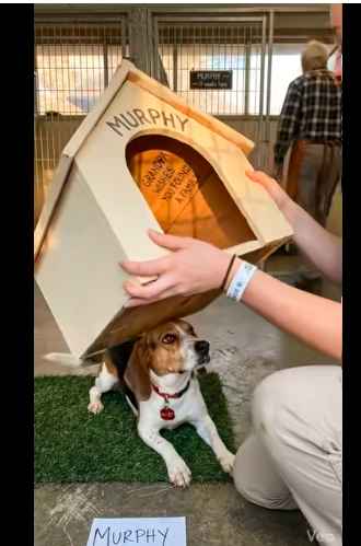 The beagle mix was adopted four days later. The adopter said, in the comments under that photo, “We are bringing the doghouse home with him.”