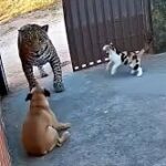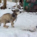 A chained mother dog, trembling from the cold, stood helplessly with her puppies in front of an abandoned warehouse. The canine family huddled together, trying to stay warm, their sorrowful eyes searching the distance…