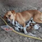 In a forgotten corner of an overgrown, abandoned yard, a mother dog lay shackled to a rusted metal pole. Her frail, emaciated body curled protectively around her newborn puppies, offering what little…